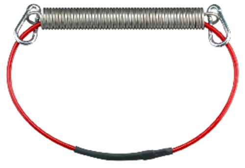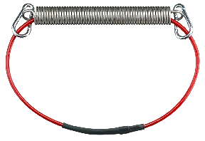 Version consisting of: wire rope with red PVC sheath, 2 carabiner galvanized and tension spring (1.4310)