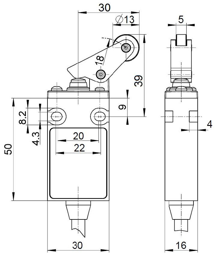 Actuating speed max. 0.5 m/s with a vertical actuating angle of 30°