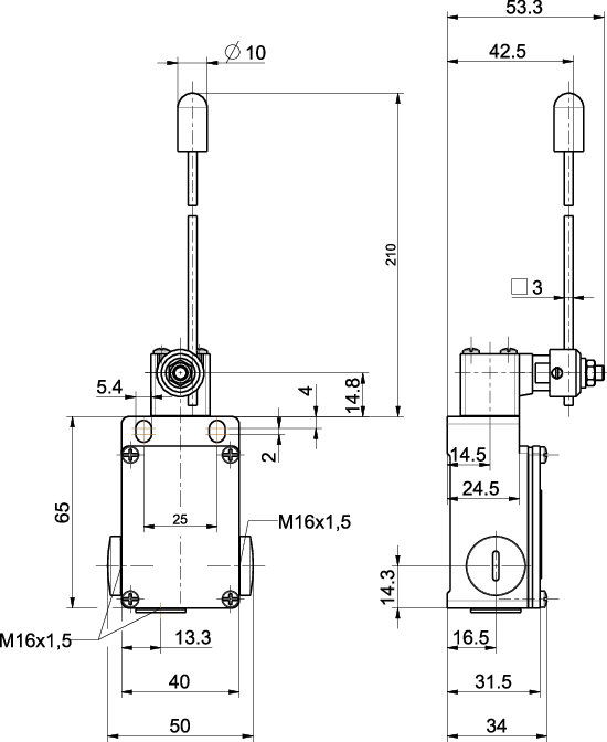 Lever can be repositioned in 10° steps clockwise or counter-clockwise