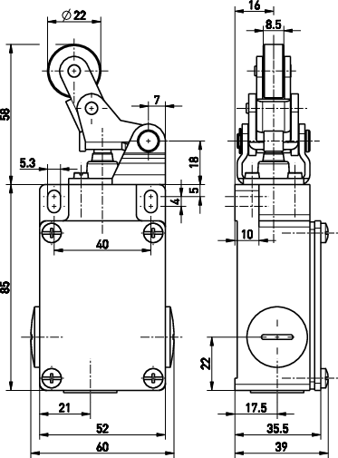 Actuating speed max. 0.5 m/s with a vertical actuating angle of α and β = 40°
