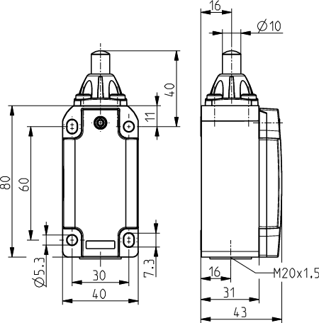 • Actuating speed max. 0.5 m/s with a vertical actuating angle of 0°