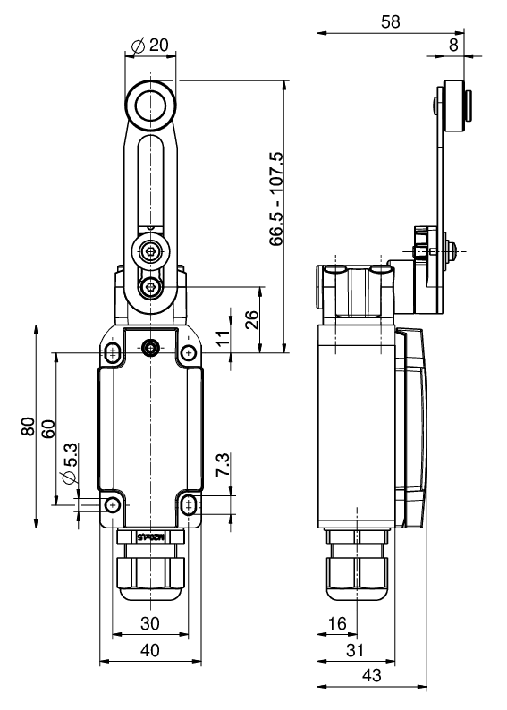 Actuating speed max. 2.5 m/s with a vertical actuating angle of 30°