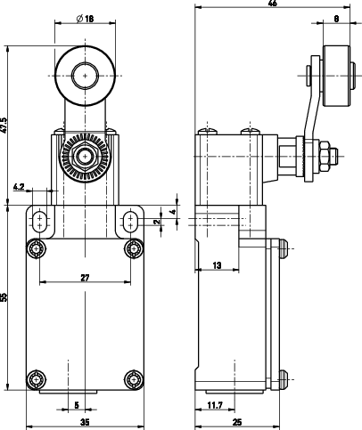 Lever can be repositioned in 10° steps clockwise or counter-clockwise