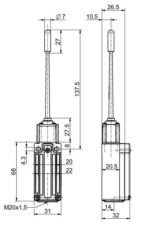 Actuator: Plastic spring rod TKK (insensitive to soiling)