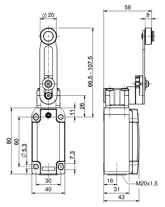 Actuating speed max. 2.5 m/s with a vertical actuating angle of 30°