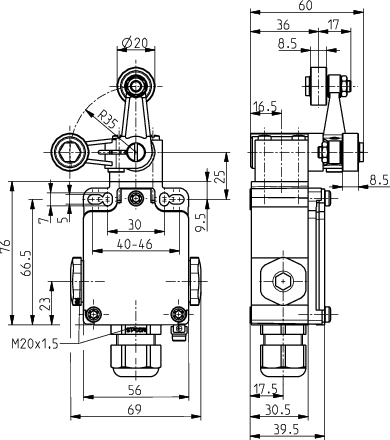 Actuating speed max. 2.5 m/s with a vertical actuating angle of 30°