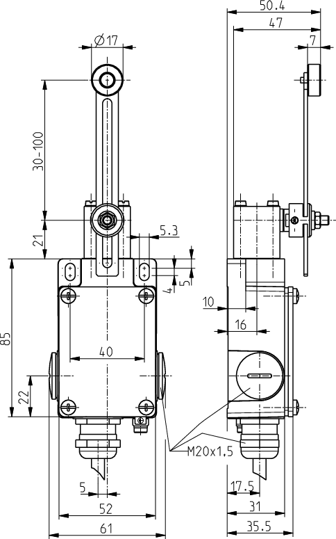 T5: –20 °C … +75 °C, +90 °C with max. 3 A