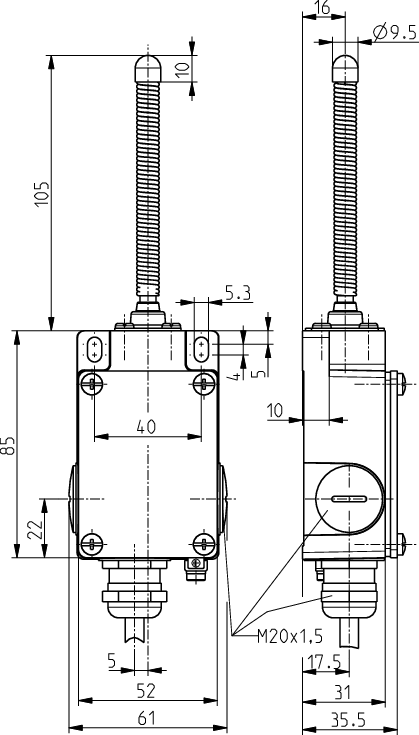 T5: –20 °C … +75 °C, +90 °C with max. 3 A