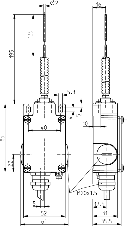 T5: –20 °C … +75 °C, +90 °C with max. 3 A