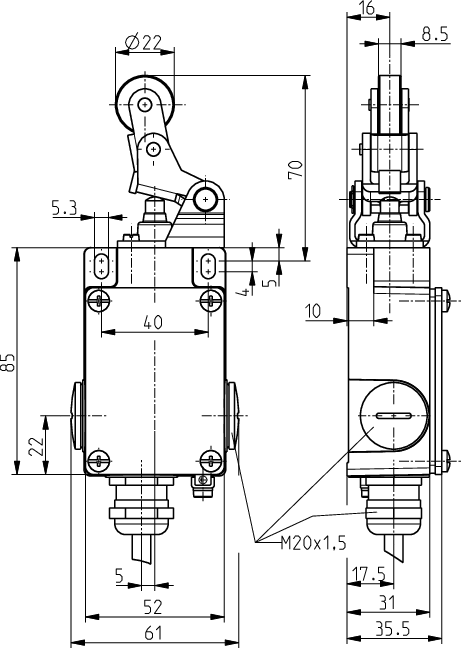 • Actuator: Offset roller lever with collar WHK