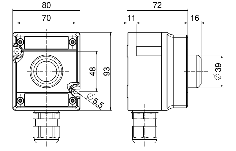 cap nut of cable gland: max. 2 Nm