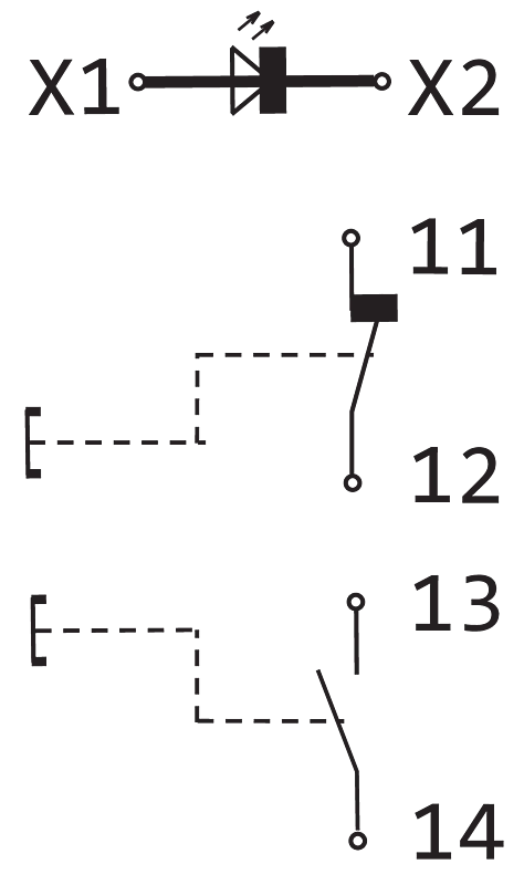 Contact element: AC-12: 6 A/400 VAC; AC-15: 2.5 A/400 VAC; DC-13: 1.25 A/250 VDC