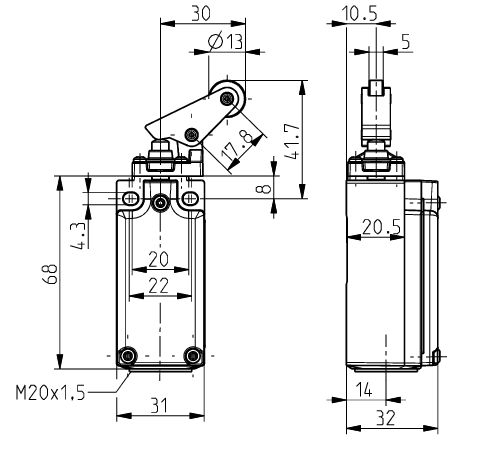 1 Ex"e" cable gland M20x1.5 included in delivery.