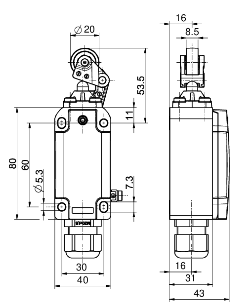 Actuating speed max. 0.5 m/s with a vertical actuating angle of 30°