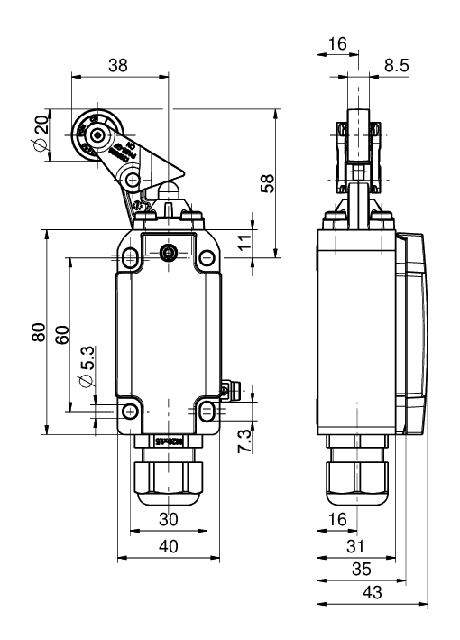 Actuating speed max. 0.5 m/s with a vertical actuating angle of 30°