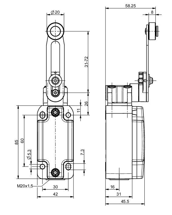 1 Ex"e" cable gland M20x1.5 included in delivery.