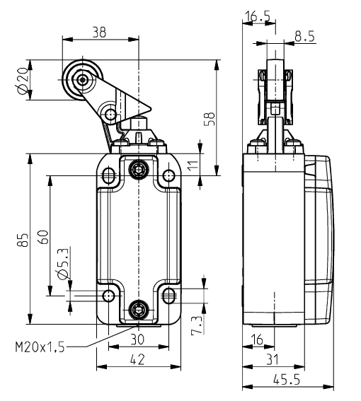 1 Ex"e" cable gland M20x1.5 included in delivery.