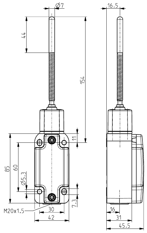 1 Ex"e" cable gland M20x1.5 included in delivery.