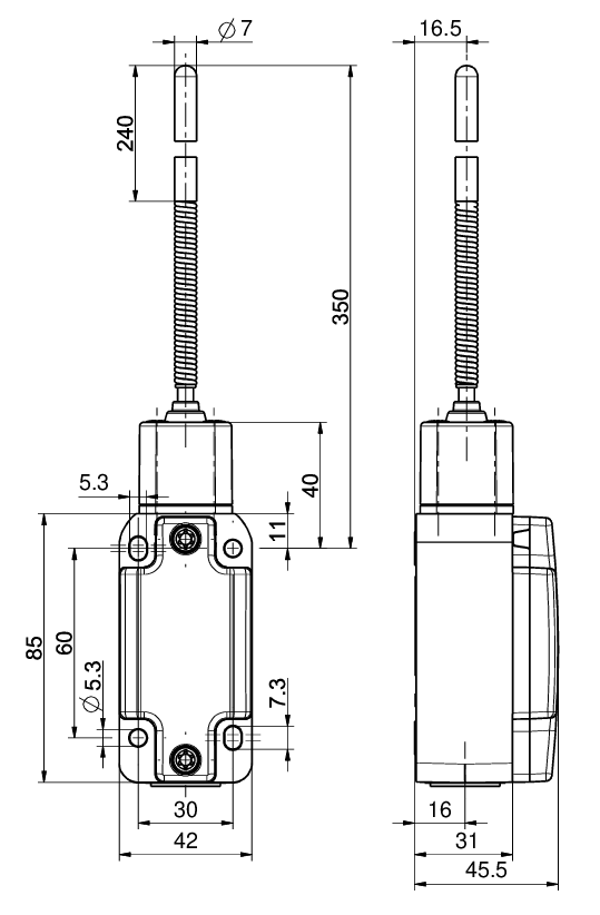 Actuator: Long spring rod with plastic tip TKL