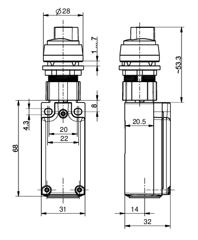Mounting hole diameter 22.5 mm
