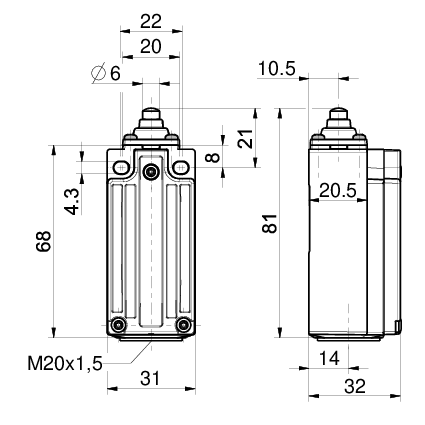1 Ex"e" cable gland M20x1.5 included in delivery.