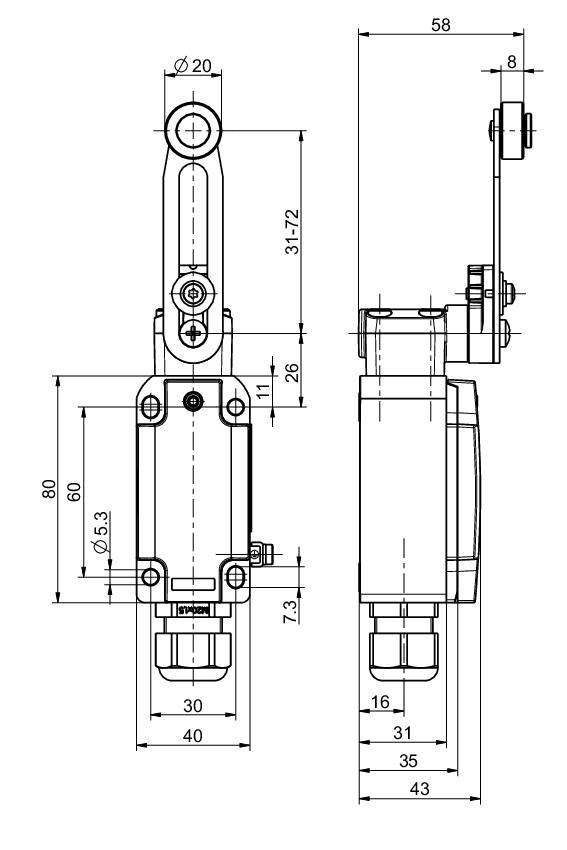 Actuating speed max. 2.5 m/s with a vertical actuating angle of 30°
