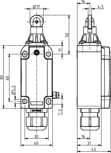 Actuating speed max. 0.25 m/s with a vertical actuating angle of 30°