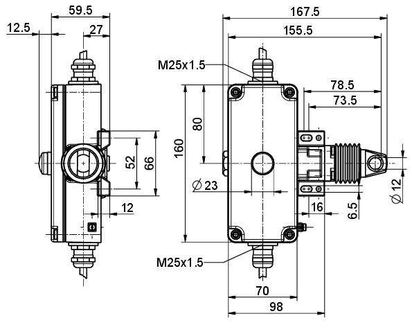 EN 60947-5-1, EN 60947-5-5, EN IEC 60079-0, EN 60079-1, EN 60079-31, EN ISO 13850, EN ISO 13849-1