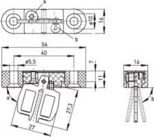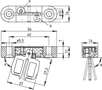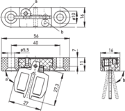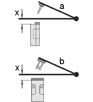 Actuating radius on hinged guards a = 25 mm and b = 38 mm