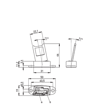 Actuating radius adjustable, min. 100 mm, using a hexagonal key wrench (a or b)