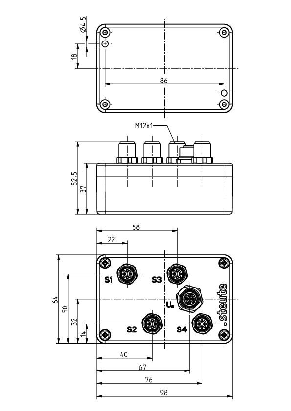 Sensors: plug-in connector 4 x M12 x 1, 4-pole