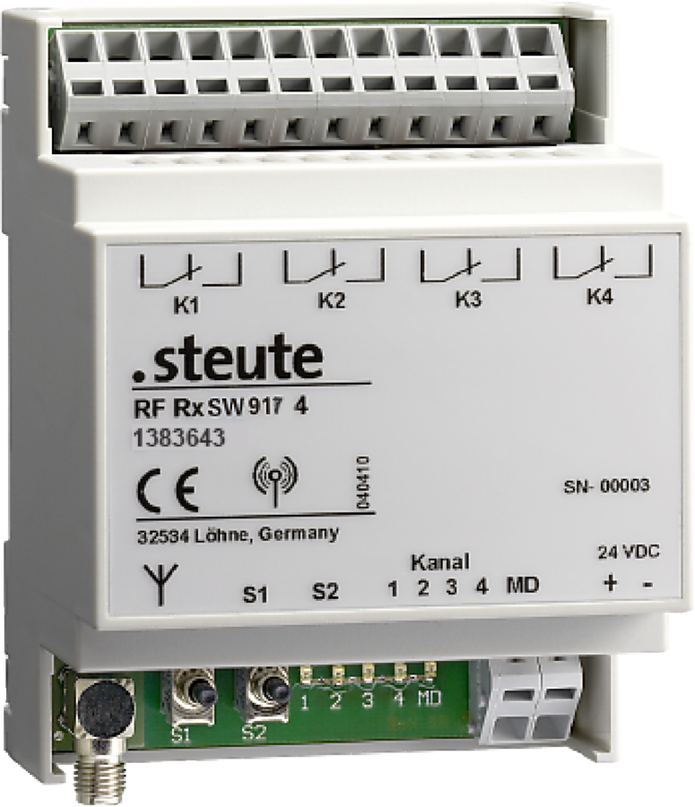 max. 24 ms (measured from the start of a radio telegram to the end of the relay contact bounce time, with 1 x repetition of the radio telegram due to transmission disturbance)