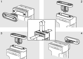 Actuating radius on hinged guards a = 150 mm and b = 150 mm