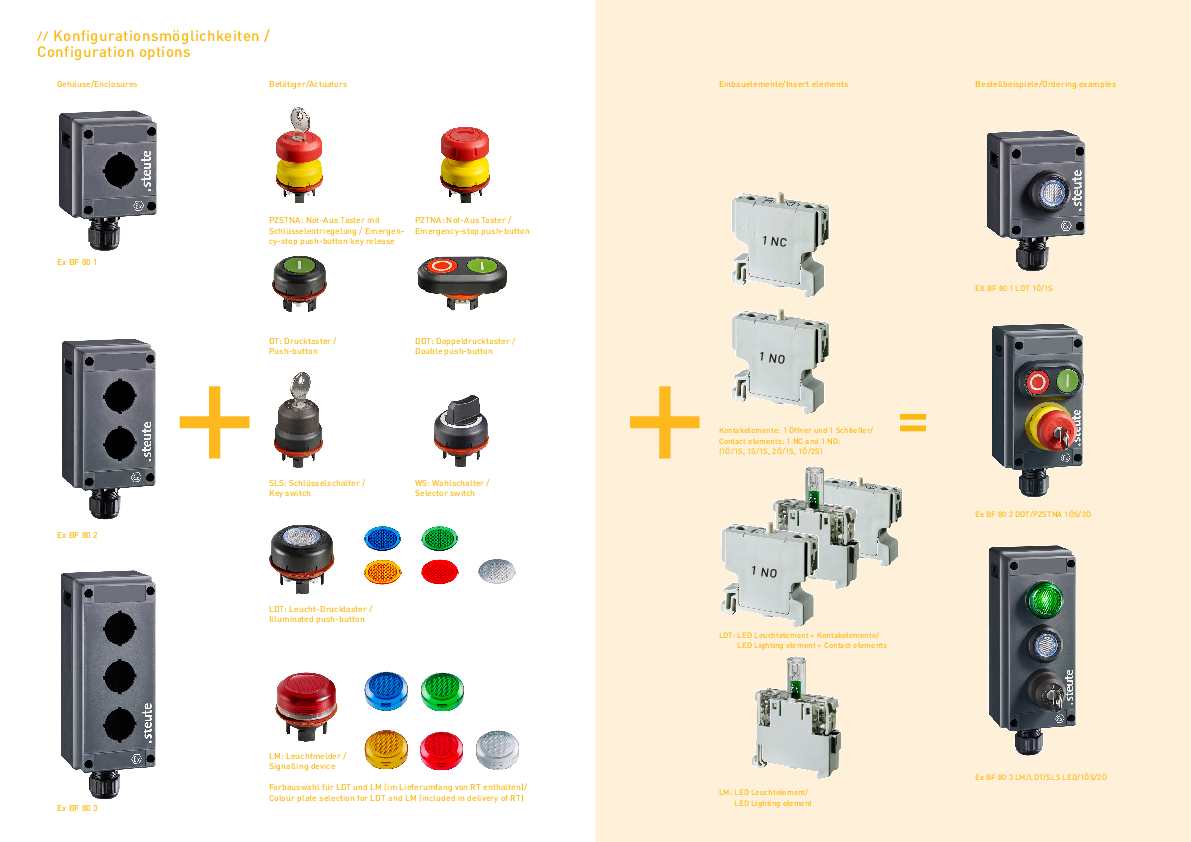 • Different actuating elements like push buttons, selector or key switches available