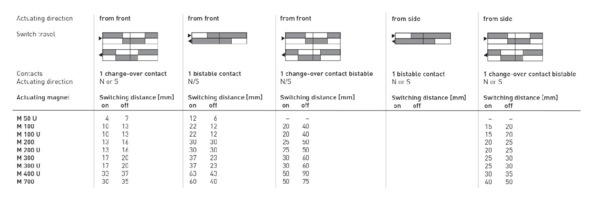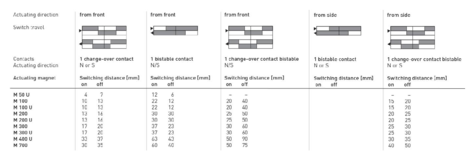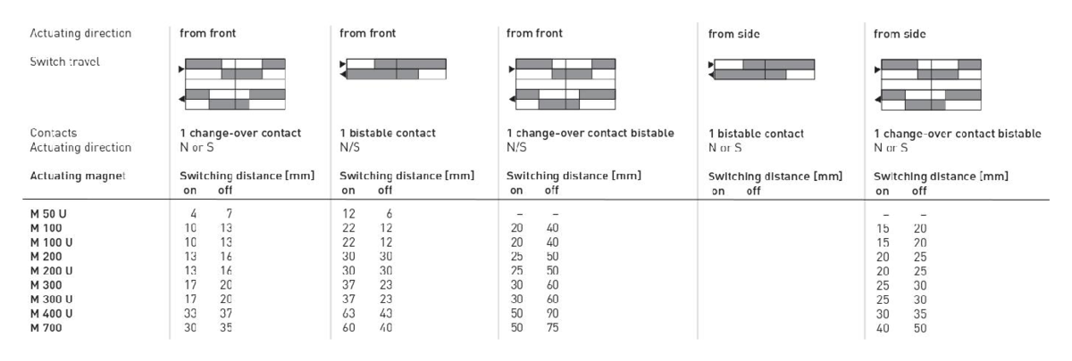 • Switching distance up to 30 mm depending on the actuating magnet