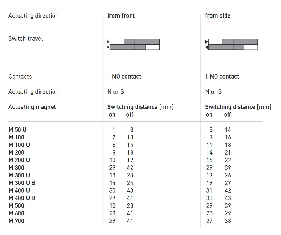 • Switching distance up to 30 mm depending on the actuating magnet