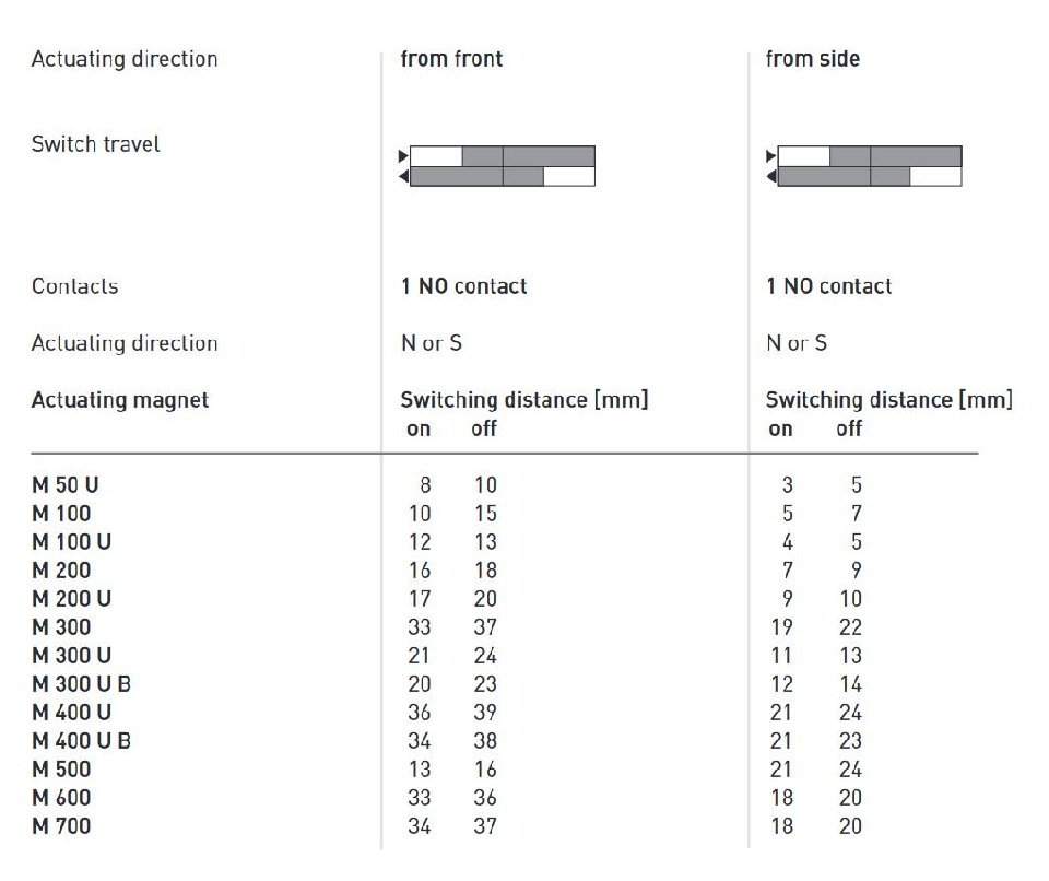 Switching distance up to 36 mm depending on the actuating magnet