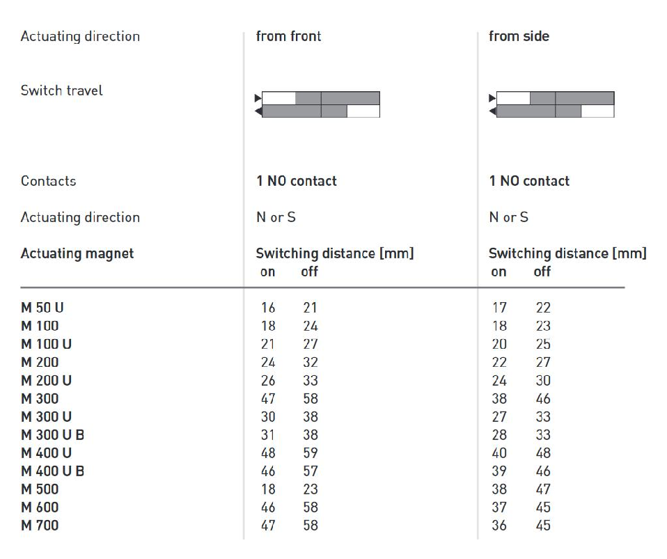 Switching distance up to 48 mm depending on the actuating magnet
