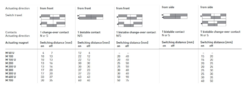 • Actuation from front, actuation from side only with bistable contact