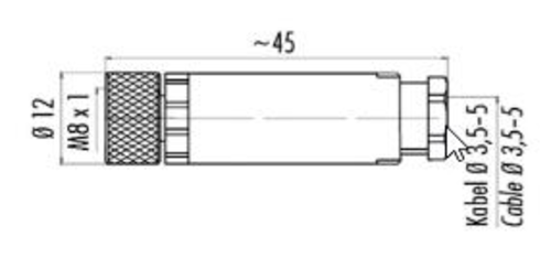 直型M8 x 1母型接插件连接器,3-针