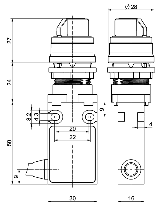 安装孔直径22.5 mm