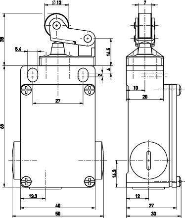 避免操作头从开关左侧操作,因会降低限位开关的机械寿命。