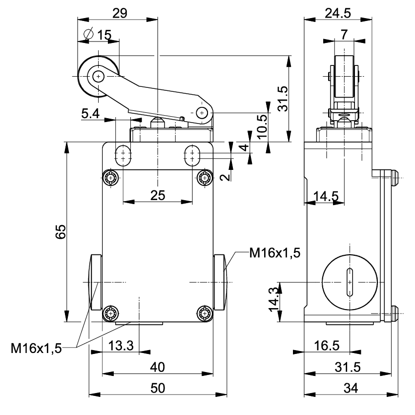 避免操作头从开关左侧操作,因会降低限位开关的机械寿命。