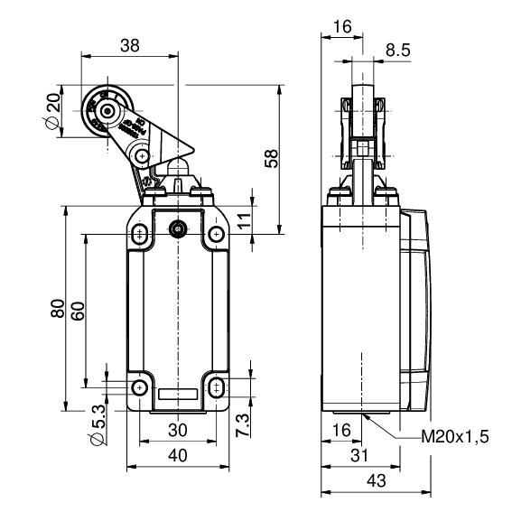 避免操作头从开关左侧操作,因会降低限位开关的机械寿命。