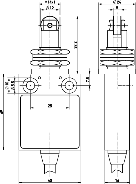 操作头:正面安装滚轮柱塞FR