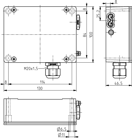 2 x M20 x 1.5; use only Ex approved and certified cable glands with min. degree of protection IP67