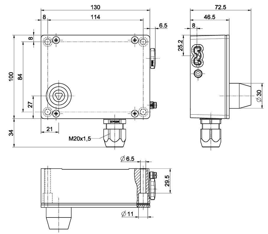 2 x M20 x 1.5; use only Ex approved and certified cable glands with min. degree of protection IP67