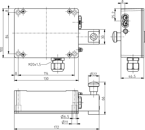 2 x M20 x 1.5; use only Ex approved and certified cable glands with min. degree of protection IP67