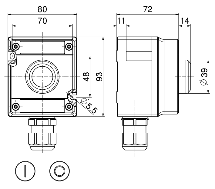 线缆格兰的螺帽盖: max. 2 Nm
