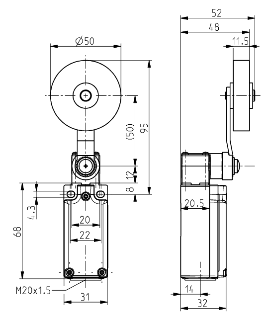 操作头:带橡胶滚轮的摆臂式操纵杆D50